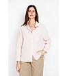Assuili Cămașă de damă în dungi din bumbac și in în culoarea alb și piersici Lenitta Guler clasic