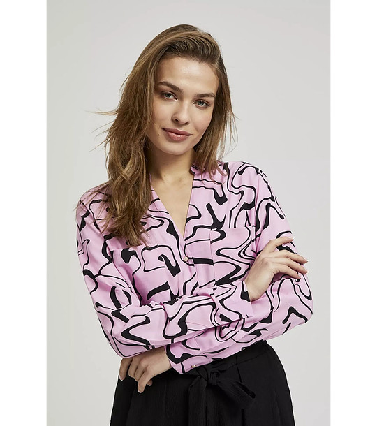 Moodo Cămașă de damă în roz și negru Mireille Decolteu în V