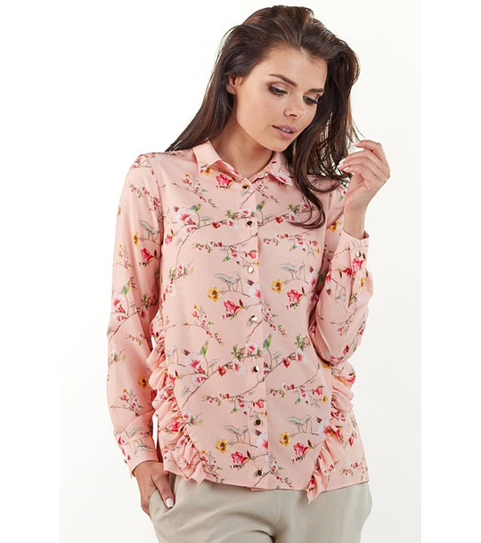 Cămașă de damă roz cu imprimeu floral Klea