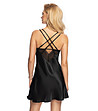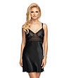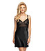 Cămașă de noapte Winona neagră din satin și dantelă