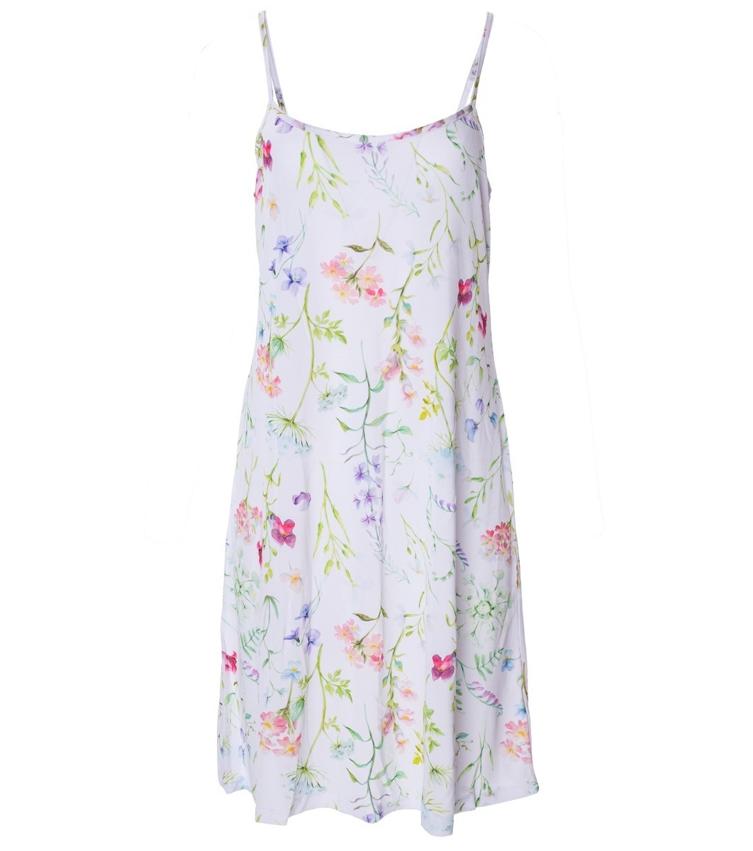 MEWA Lingerie Cămașă de noapte albă cu imprimeu floral VISTEX® este o țesătură naturală unică, o combinație de mătase de viscoză de înaltă calitate, lână și bumbac. Aceasta este o fibră mai puțin cunoscută, cu proprietăți naturale precum hidroscopicitate, durabilitate, moliciune și acțiune antibacteriană.