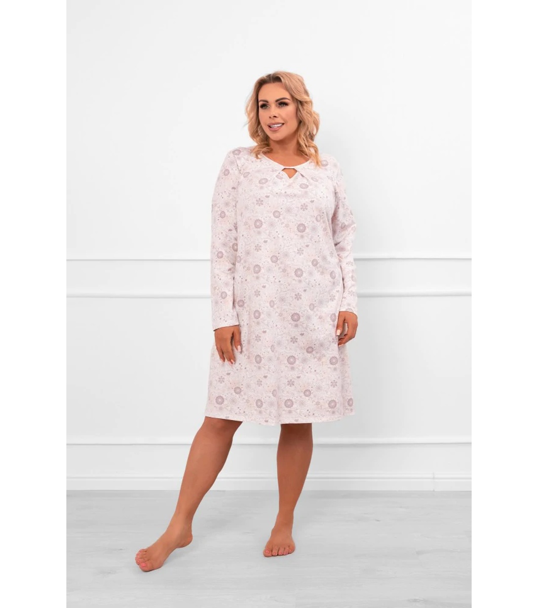 Cămașă de noapte bej din bumbac cu imprimeu floral Satui