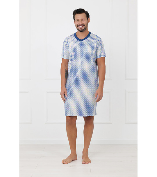 Cămașă de noapte bărbătească din bumbac, cu mâneci scurte, în model albastru NIGIER