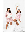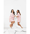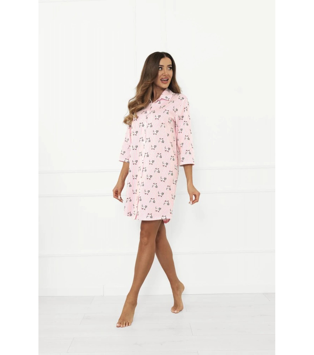 Cămașă de noapte din bumbac, alb și roz, cu imprimeu și nasturi Kiota