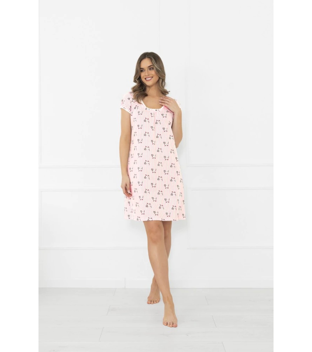 Cămașă de noapte din bumbac cu dungi roz și alb, cu imprimeu Sajla