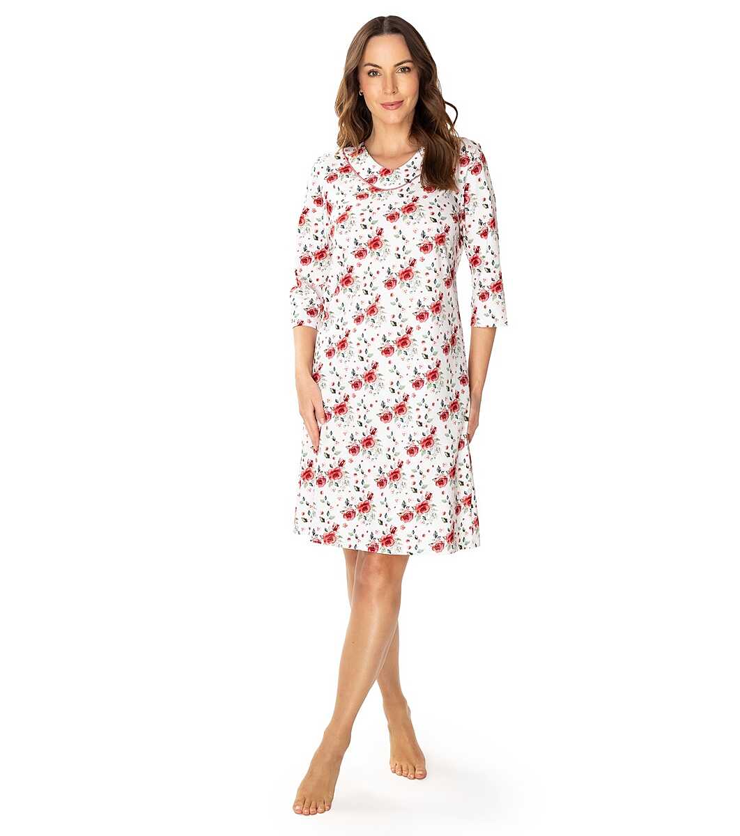 MEWA Lingerie Cămașă de noapte din bumbac cu imprimeu floral Malina Decolteu în V