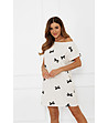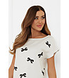 Italian Fashion Cămașă de noapte din bumbac, culoare ecru Figaro, cu imprimeu cu panglici Decolteu tip barcă