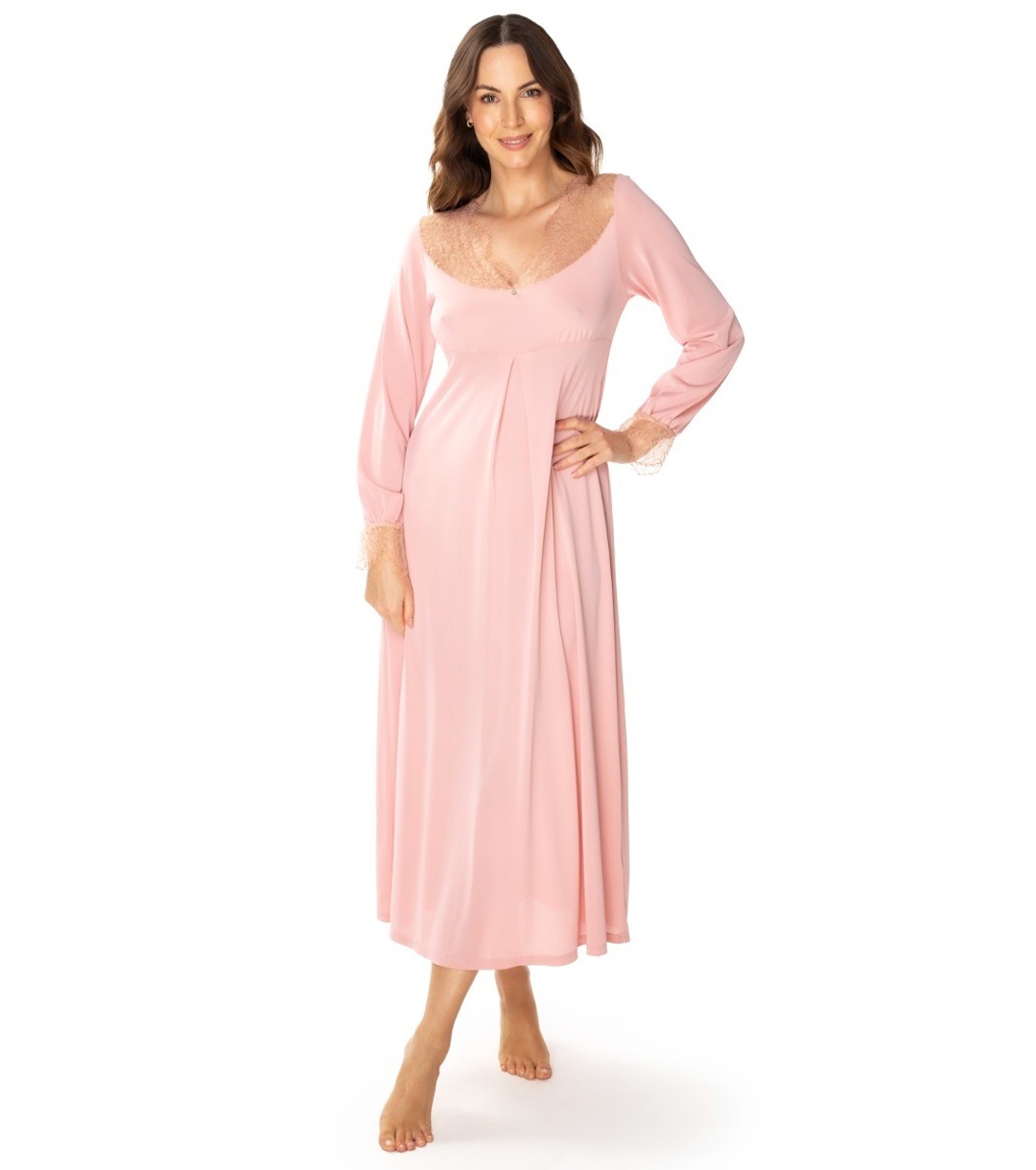 Cămașă de noapte lungă în nuanță roz cu dantelă Mona