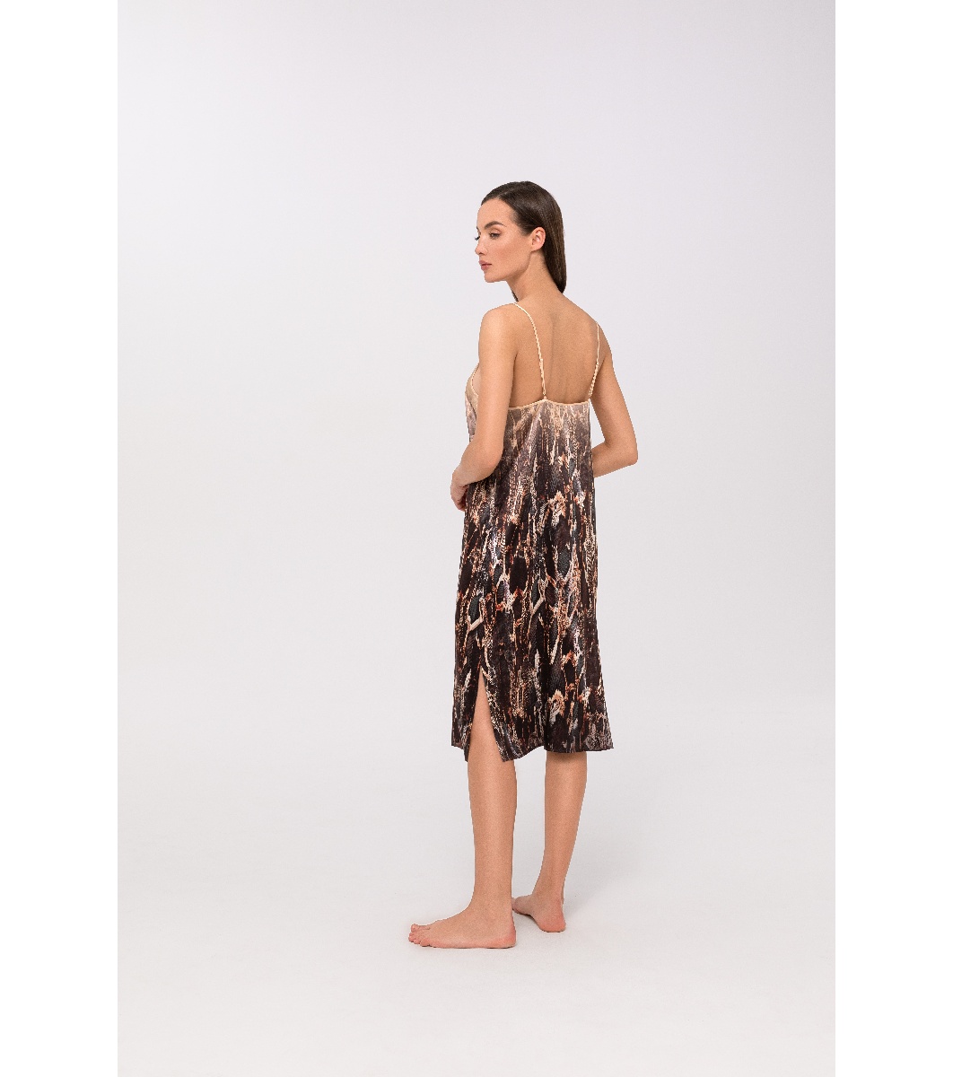 Cămașă de noapte maro cu imprimeu animal FEARLESS