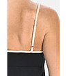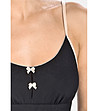 Bretele subțiri, reglabile, iar lungimea ajunge deasupra genunchiului.