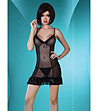 Livco corsetti Cămașă de noapte neagră cu buline și tanga Belvia Cămașă de noapte elastică cu croială mulată