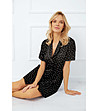 Italian Fashion Cămașă de noapte neagră cu nasturi și imprimeu alb Ria Guler și revere