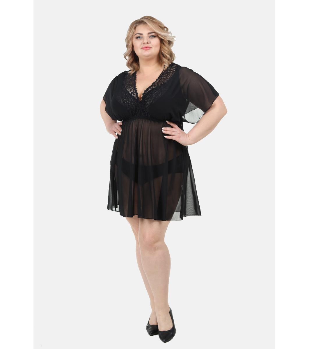 Teyli Cămașă de noapte neagră transparentă Emma Confecționată din plasă delicată transparentă de înaltă calitate, plăcută la atingere și potrivită pentru corpul feminin.