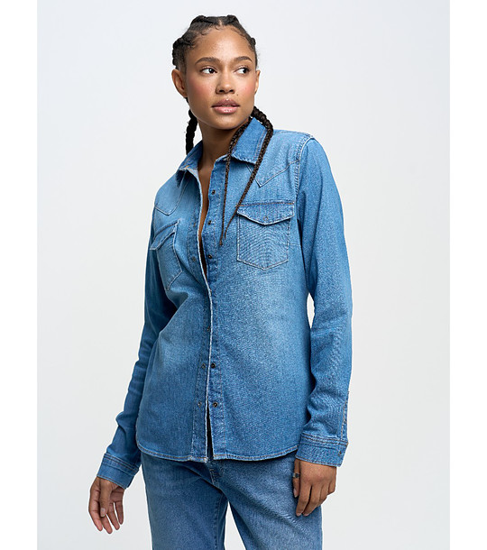 Big Star Cămașă din denim albastru deschis din bumbac NORRA Guler clasic