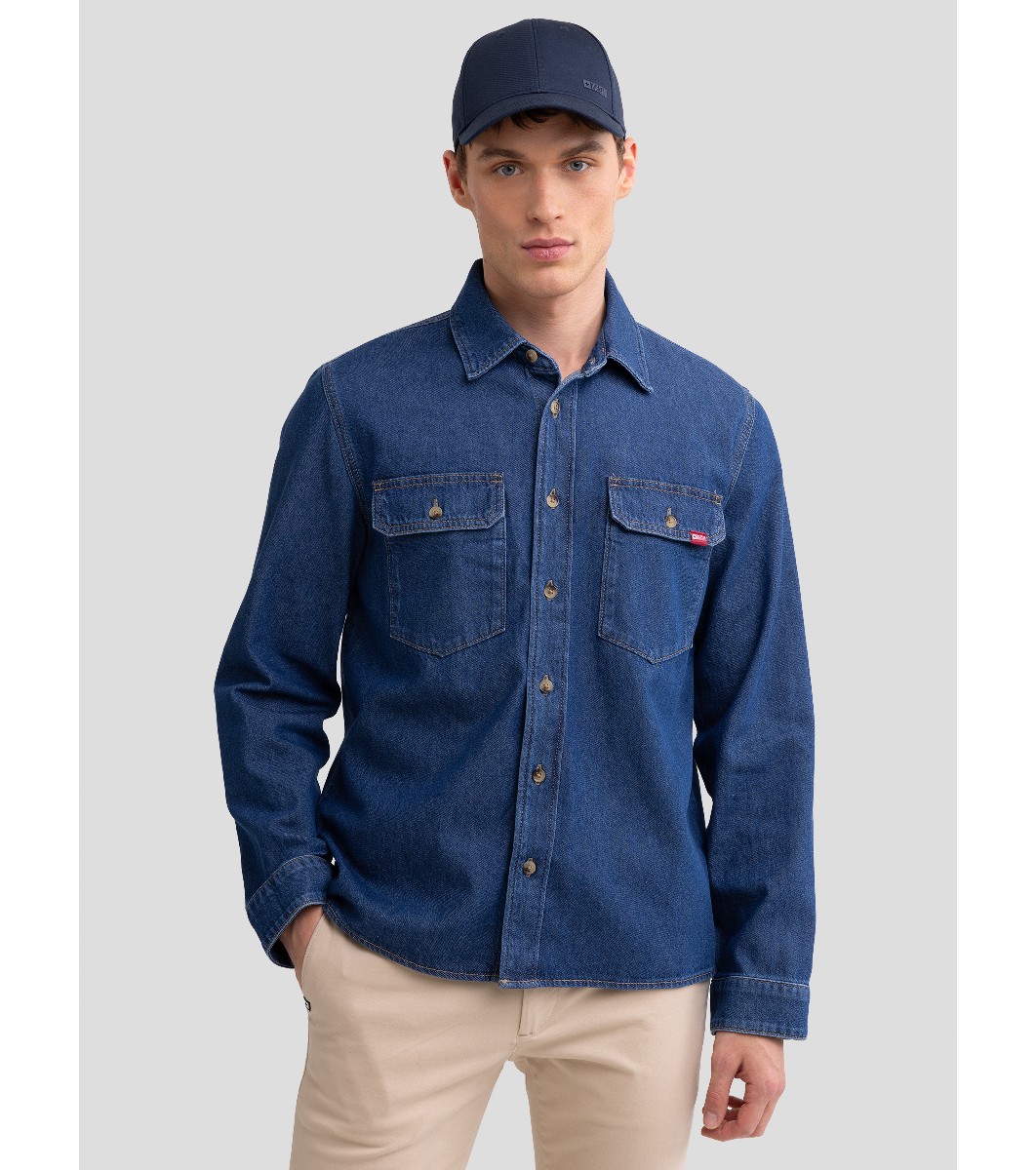 Big Star Cămașă din denim albastru închis din bumbac CODY Guler clasic
