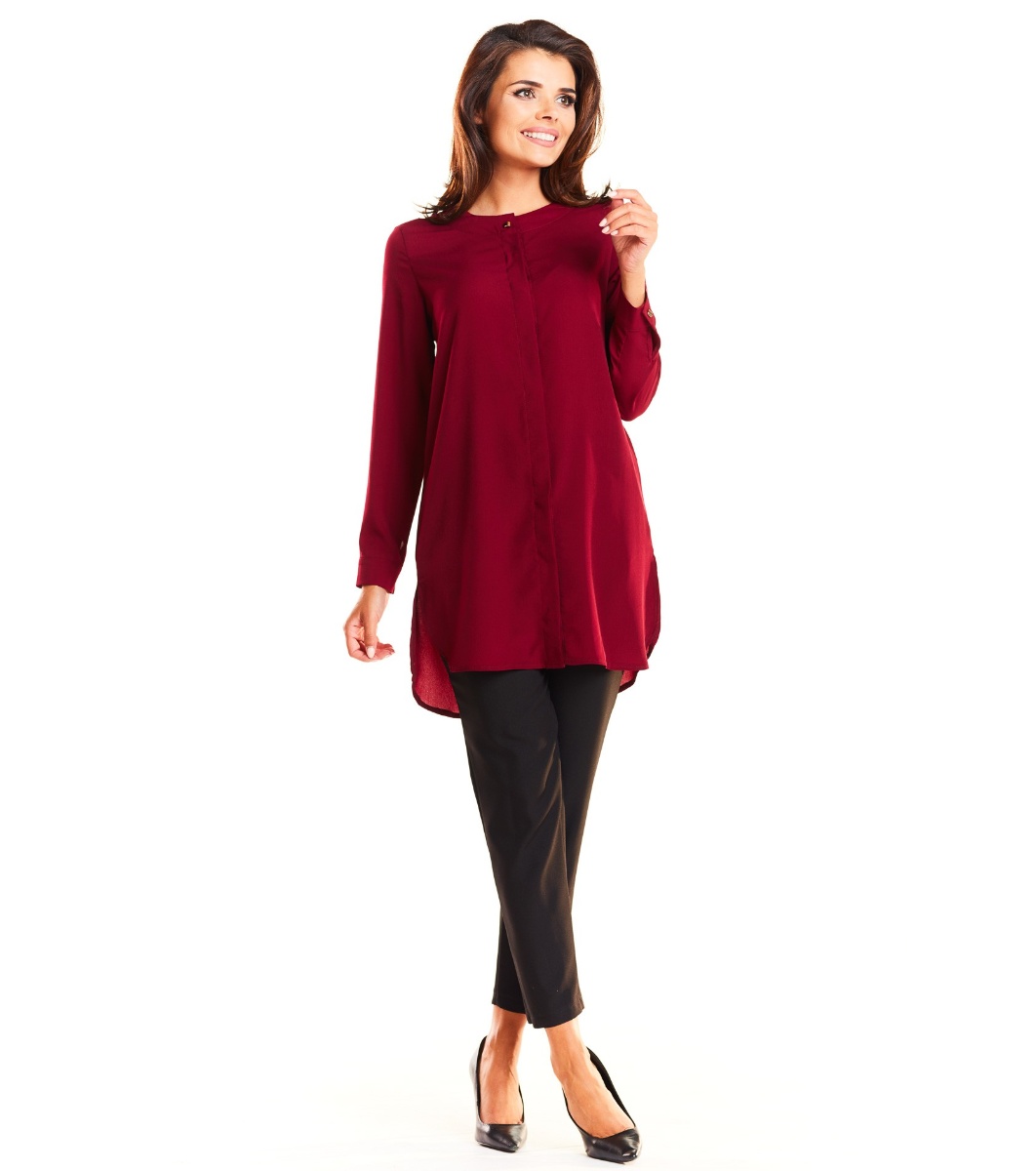 Awama Cămașă lungă de damă, culoare vișinie, Ewa Decolteu rotund