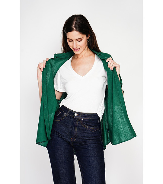 Le jardin du Lin Cămașă lungă verde supradimensionată cu buzunar MER Cămașă lungă cu croială supradimensionată.