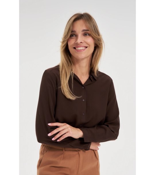 Moodo Cămașă maro de damă cu guler Guler clasic