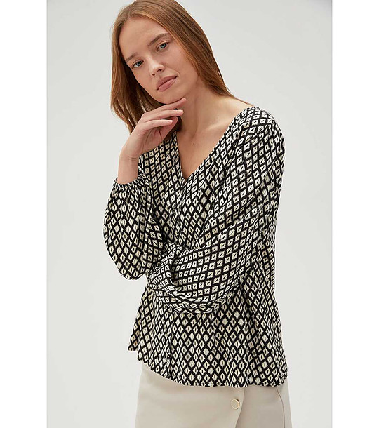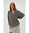 Moodo Cămașă neagră de damă cu imprimeu figurativ Decolteu în V