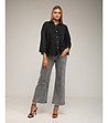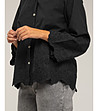 Tantra Cămașă neagră supradimensionată din bumbac pentru femei, cu broderie englezească Guler clasic