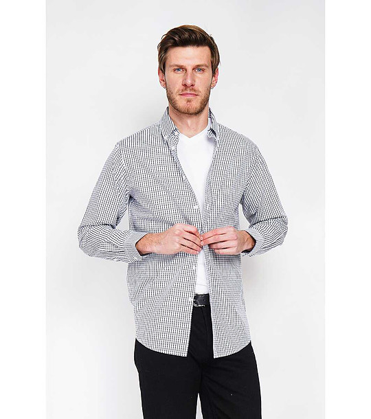 Cămașă pentru bărbați din bumbac în carouri alb-negru