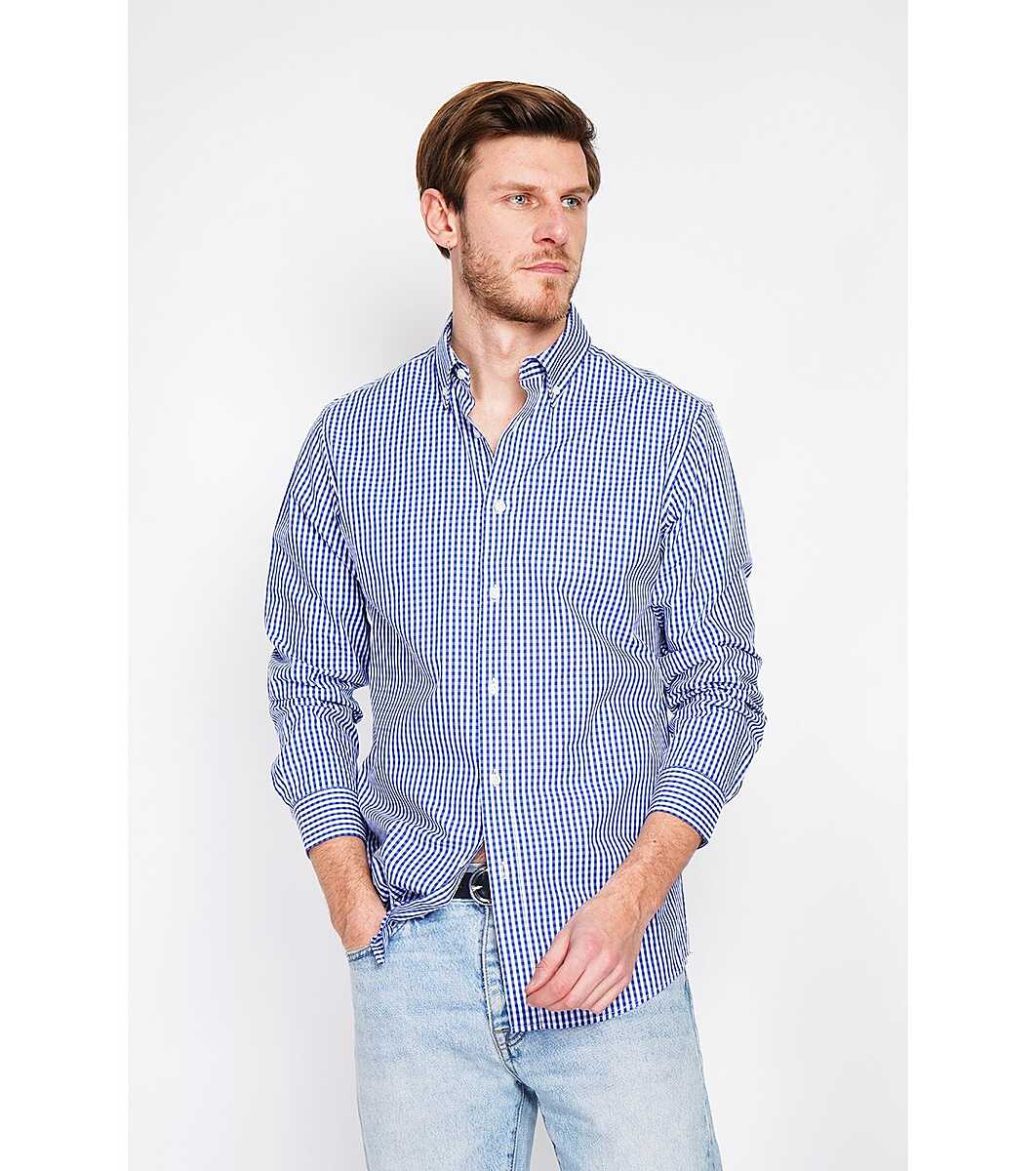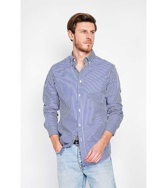 Cămașă pentru bărbați din bumbac în carouri în albastru deschis și alb