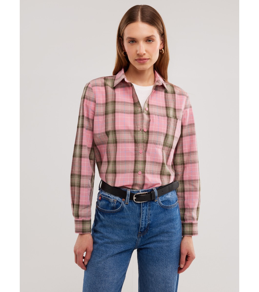 Cămașă roz în carouri din bumbac pentru femei SINGI