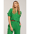 Cămașă scurtă verde de in pentru femei