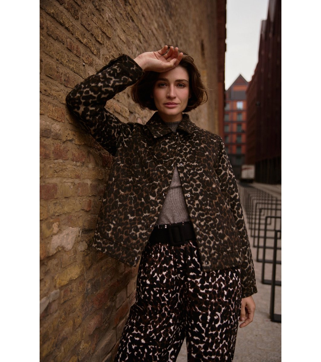Cămașă-jachetă pentru femei cu imprimeu animal maro