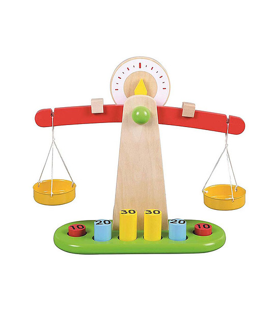 Un cântar clasic cu care, în timp ce se distrează, copiii învață principiul echilibrării cu greutăți și își dobândesc o idee despre greutatea și masa obiectelor.
