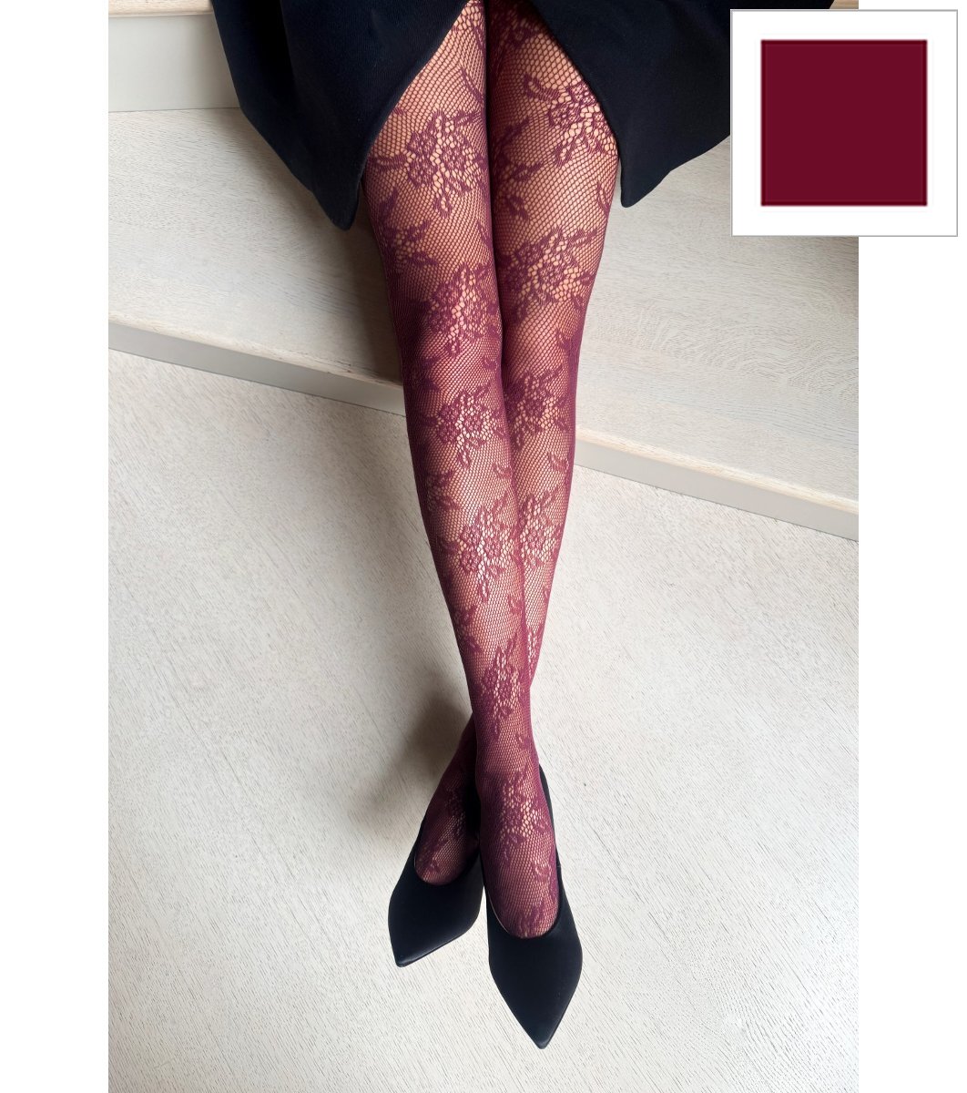Colanți GIA bordo cu flori ajurate