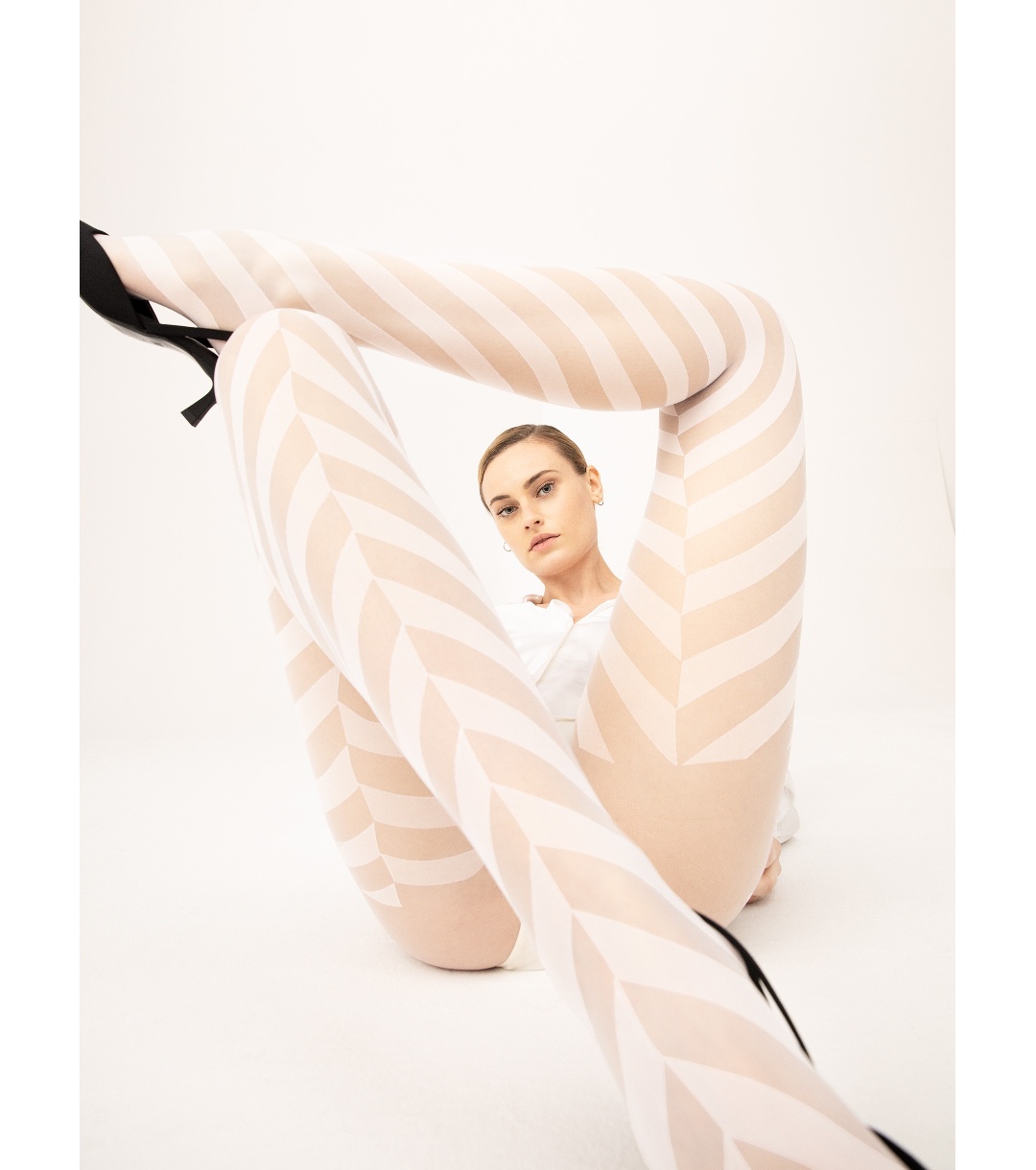 Fiore Colanți albi cu model figurat 15 DEN DISTINCT Colanți cu design figurat din dungi diagonale care se întâlnesc în față și în spate sub formă de cusătură decorativă