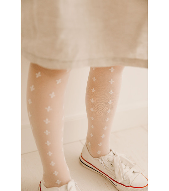 Colanți albi pentru copii, model figurat, 15 DEN FLOWY