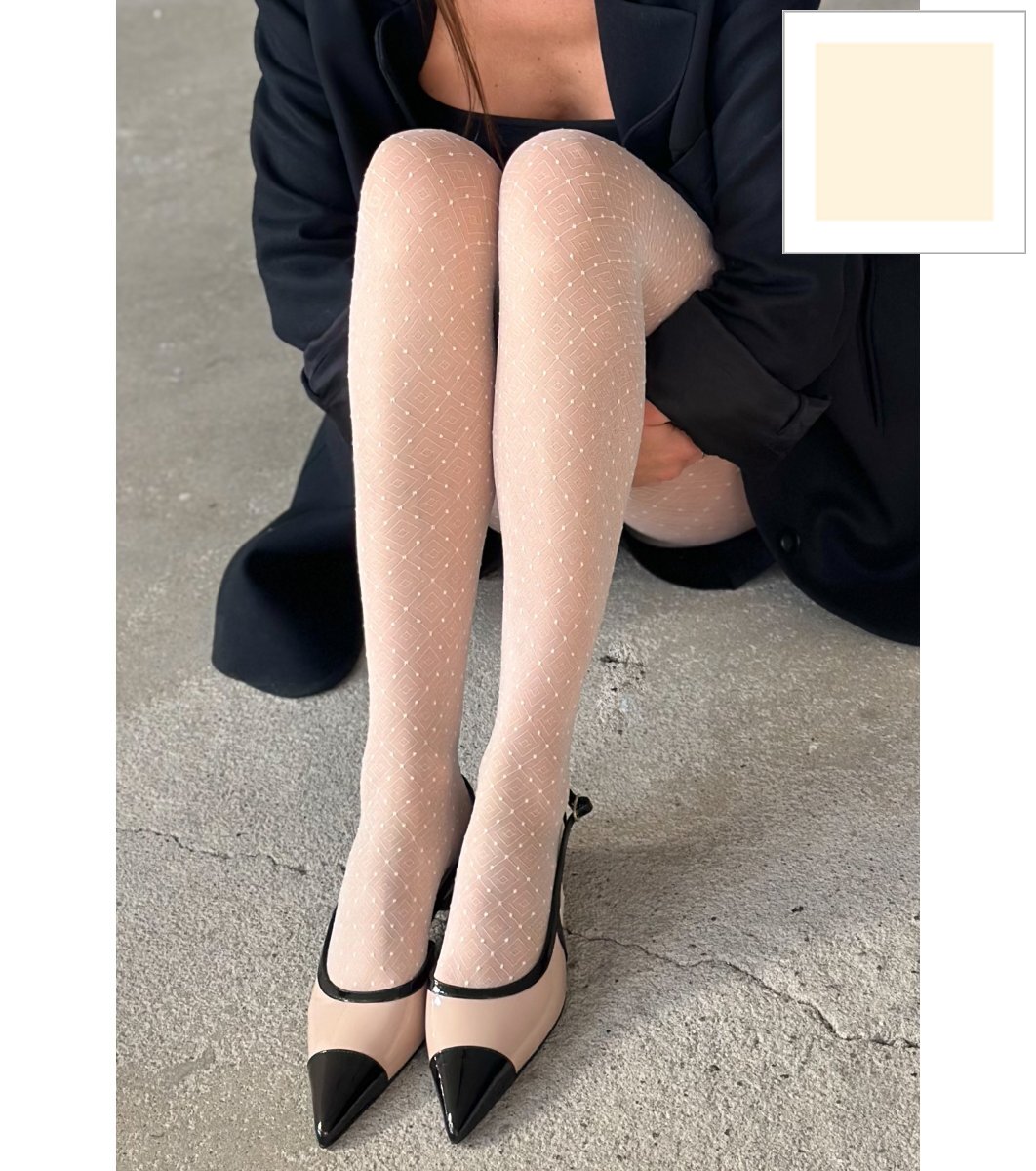 Colanți cu model geometric în culoarea crem DAFNE