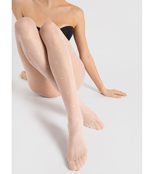 Fiore Colanți figurați ecru 20 DEN CUORI Colanți fini cu un model figurat delicat de inimioare