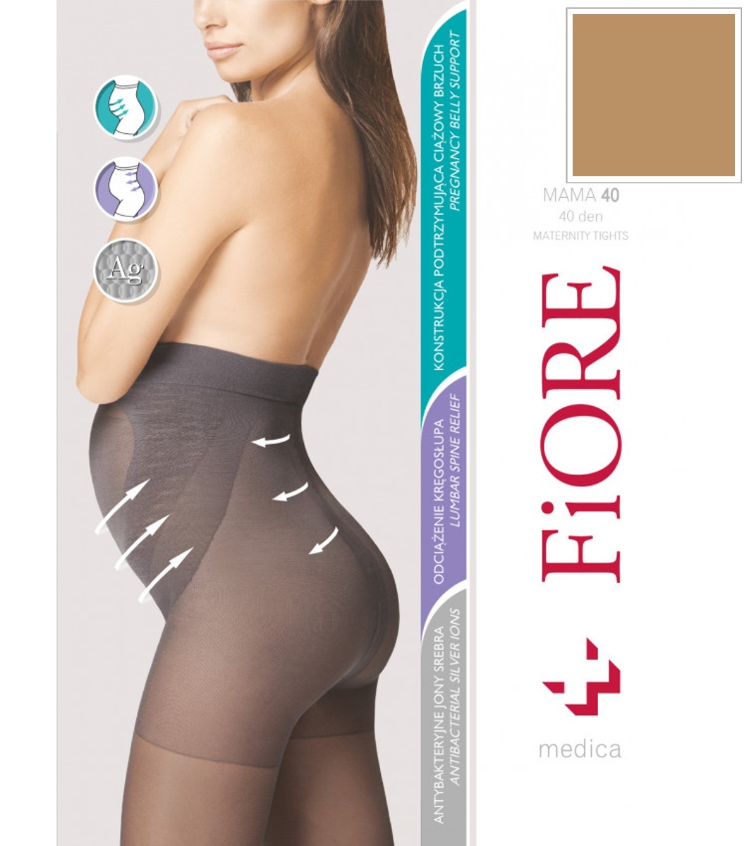 Fiore Colanți gravide culoare nud deschis 40 DEN MAMA Colanți gravide cu o construcție care susține abdomenul și reduce presiunea asupra zonei lombare.