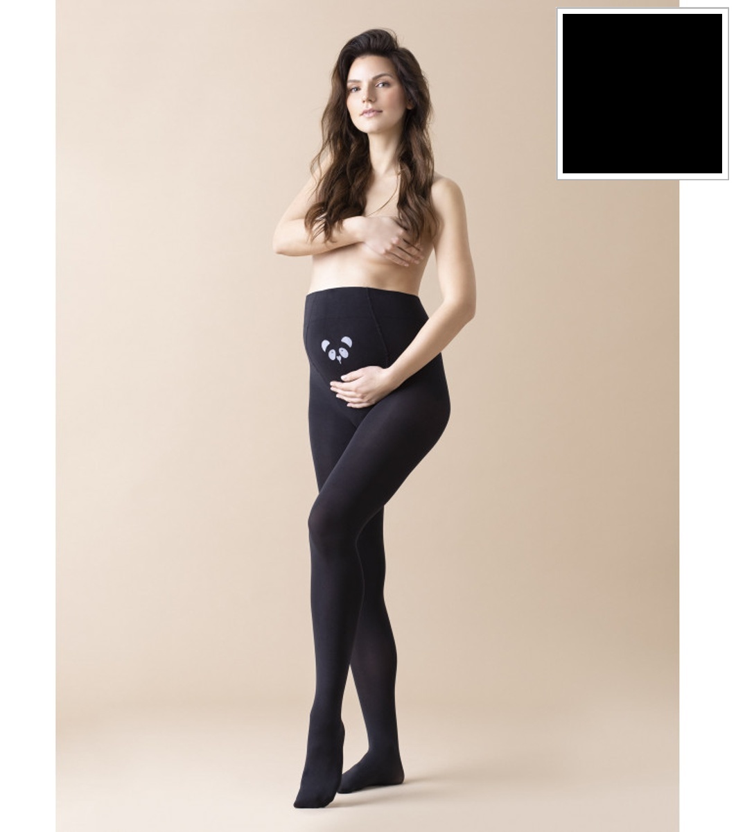 Fiore Colanți gravide negri 50 DEN Mama Panda Colanți gravide groși cu motiv panda pe față
