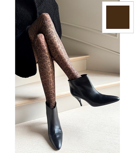 Colanți maro de damă cu imprimeu leopard LEOPARDO 20 DEN
