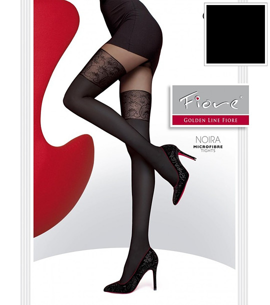 Fiore Colanți negri imitație de portjartier 60 DEN NOIRA Colanți cu imitație de ciorapi cu bordură din dantelă