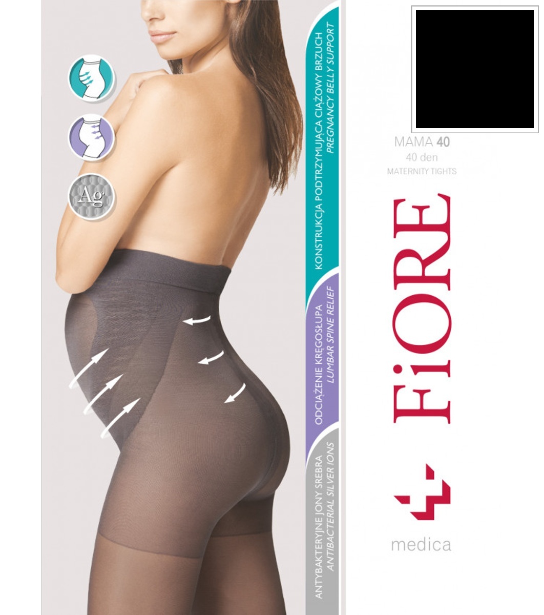 Fiore Colanți negri pentru gravide 40 DEN MAMA Colanți pentru gravide cu o structură care susține abdomenul și reduce presiunea asupra zonei lombare.
