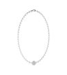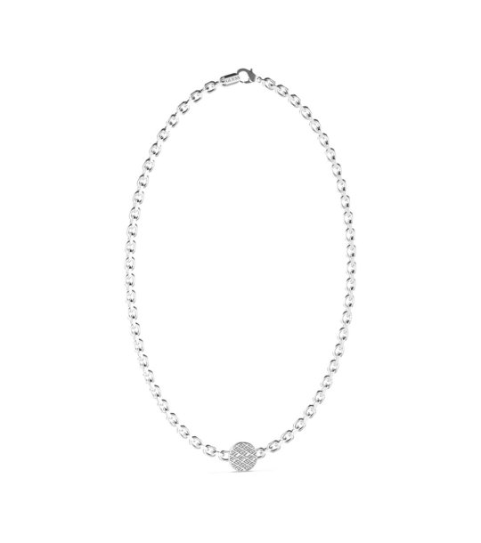Colier bărbătesc modern cu element rotund în centru. Închizătoarea este de tip carabină, care oferă siguranță și confort la purtare.