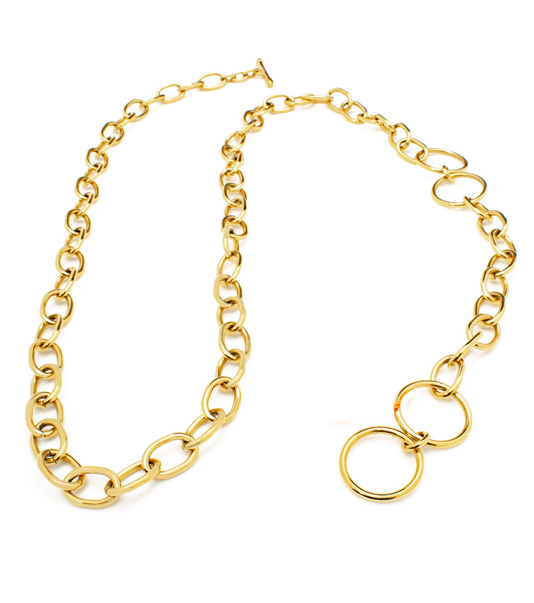 Colier elegant de damă cu elemente rotunde mari, conectate, creând un aspect stilat și modern.