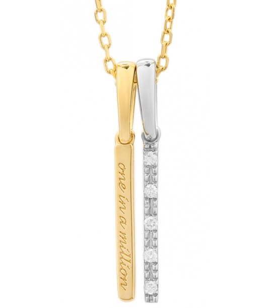 Un pandantiv este gravat cu o inscripție, iar celălalt este decorat cu pietre strălucitoare.