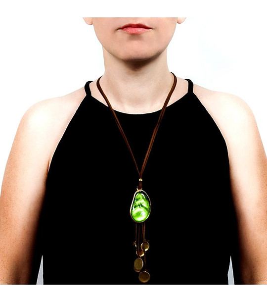 Sidartha Colier de damă cu piatră verde Colier lung original cu șnur și piatră.