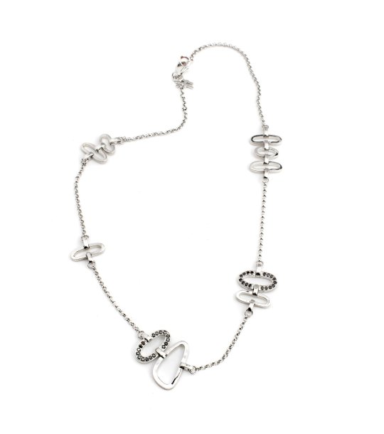 Colier elegant cu un design curat, potrivit pentru diverse ocazii. Este format dintr-un lanț cu elemente decorative care adaugă un accent stilat. Închidere sigură cu o carabină.