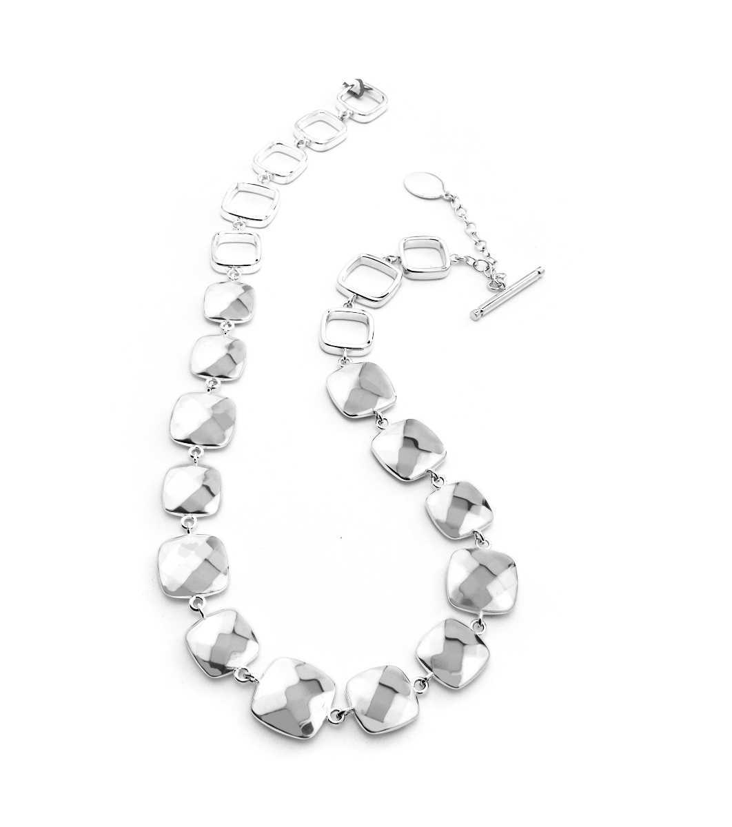 Colierul este alcătuit din elemente pătrate conectate, cu o suprafață netedă și o formă ușor convexă. Are o încuietoare reglabilă care permite ajustarea ușoară la diferite lungimi.