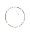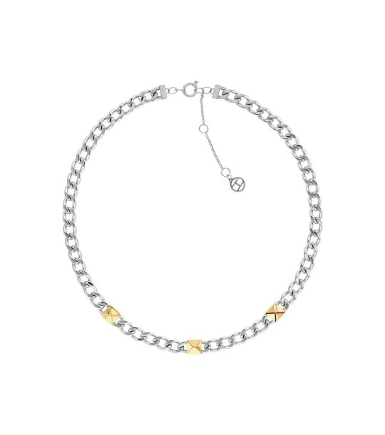 Colier elegant cu construcție de lanț și încuietoare reglabilă. Prezintă mai multe elemente decorative cubice. Potrivit pentru diverse ocazii.