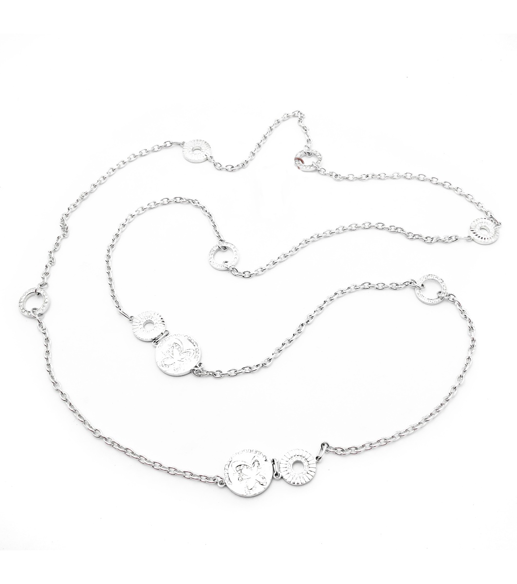 Colier elegant, potrivit pentru diverse ocazii. Este format dintr-un lanț cu elemente decorative.