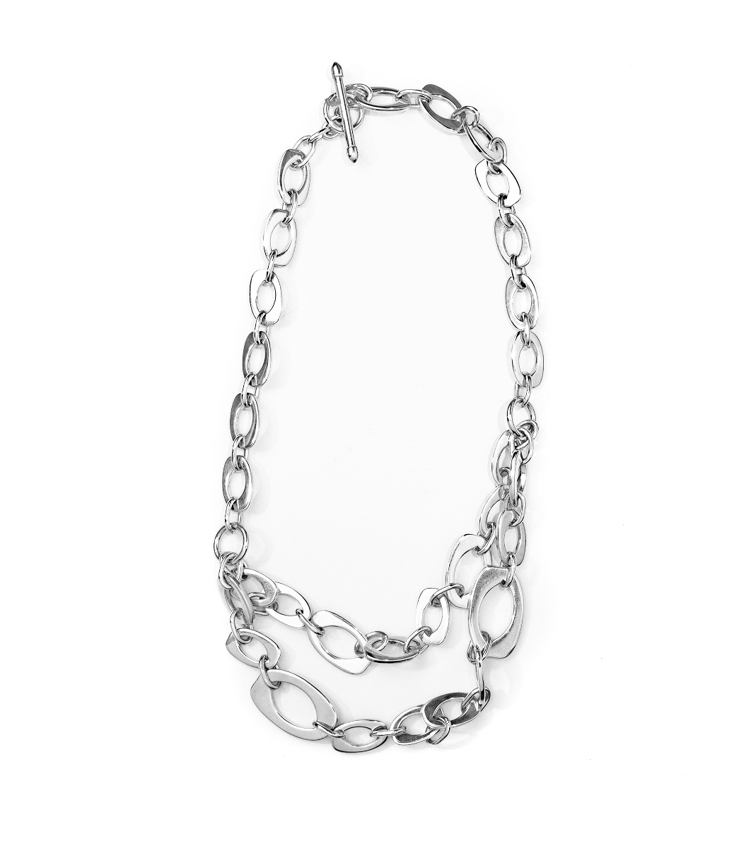 Colier elegant de damă cu lanț, format din inele ovale și rotunde. Este prevăzut cu un tip de închidere ușoară, care asigură siguranță și confort la purtare.