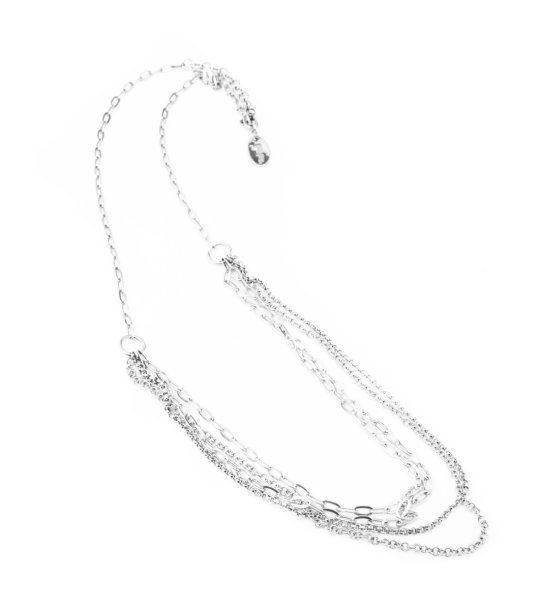 Colier elegant de damă cu mai multe lanțuri și pandantive.